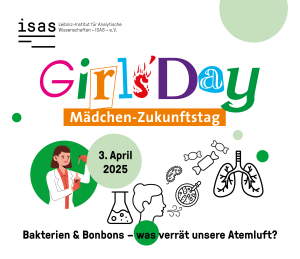 Gemeinsam mit den ISAS-Wissenschaftlerinnen werden die Teilnehmerinnen verschiedene Experimente durchführen. Sie werden Bakterien sichtbar machen und im Labor am Ionenmobilitätsspektrometer ihre eigene Atemluft analysieren. Damit sich niemand bei der Analyse ansteckt, kommen dafür verschiedene Bonbons anstelle von Bakterien zum Einsatz. Das ISAS bietet zwölf Plätze für Schülerinnen von der 8. bis zur 10. Klasse. Die Anmeldung erfolgt über das Girls’ Day Portal: https://www.girls-day.de/.oO/Show/leibniz-institut-fuer-analytische-wissenschaften-isas-e-v/bakterien-bonbons-was-verraet-unsere-atemluft.